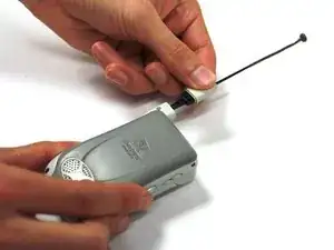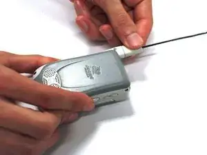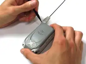 Удалите антенну, схватив за белую пластиковую деталь прямо под антенной и потянув от телефона.