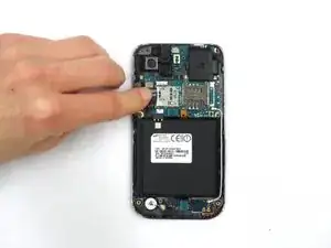 Удалите батарею, нажав на нижний край батареи и отодвинув её от телефона.