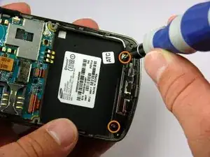 Удалите четыре чёрных винта длиной 7,30 мм вокруг отсека для батареи, используя крестовую отвёртку Phillips #00.