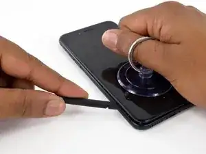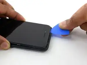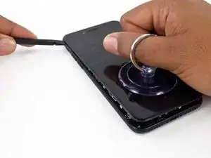 Герметизирующий клей, удерживающий дисплей на месте, очень прочен, и создание начального зазора требует значительной силы. Если вам трудно открыть зазор, покачивайте экран вверх и вниз, чтобы ослабить клей, пока не сможете вставить лопатку.