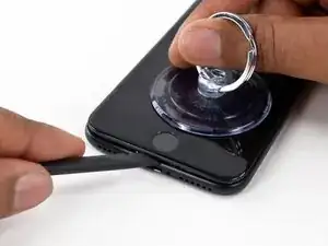 Прикрепите присоску к нижней половине сборки дисплея, прямо над кнопкой «Домой».