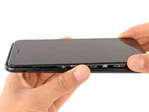 Сдвигайте лопатку вверх по левой стороне телефона, начиная с нижнего края и продвигаясь к кнопкам регулировки громкости и переключателю беззвучного режима, разрывая клей, удерживающий дисплей.