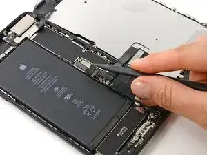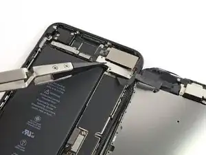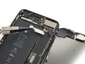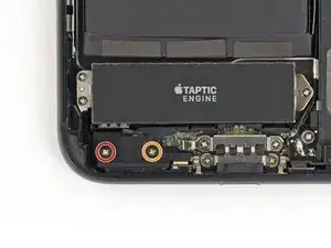 Подготовительное руководство по снятию барометрического вентиля в iPhone 7 Plus. Эту деталь необходимо удалить, чтобы получить доступ к Taptic-двигателю.