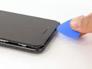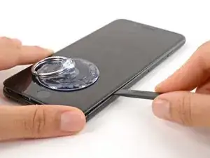 Используйте фен или приготовьте iOpener и приложите его к нижнему краю iPhone примерно на минуту, чтобы размягчить клей под ним.