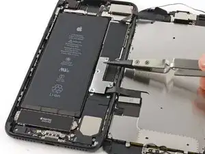 Открытие дисплея нарушит водозащитные уплотнения. Подготовьте заменяющие уплотнения перед продолжением работы после этого шага или избегайте контакта с жидкостями, если вы собираете iPhone без замены уплотнений.