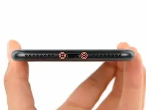Удалите два пенталобных винта 3,4 мм на нижнем торце iPhone (используйте биту P2, если у вас есть набор бит).