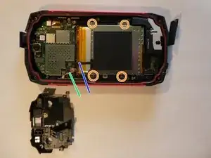 Разъём батареи (синяя стрелка) и разъём NFC (оранжевая стрелка) теперь доступны.