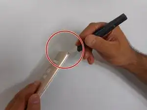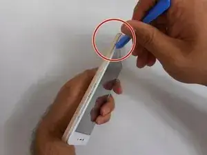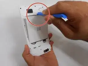 Используйте открывающий инструмент ifixit, чтобы обходить заднюю крышку телефона, ослабляя её и обеспечивая легкость снятия. Она должна легко отделяться от корпуса. Убедитесь, что вы обошли вокруг всего телефона.