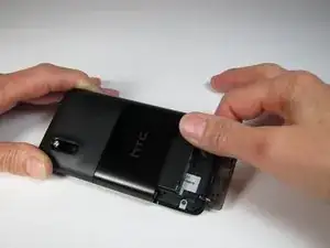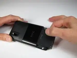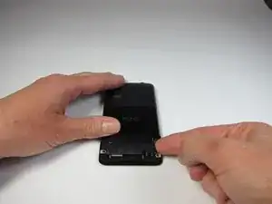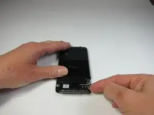 Держа телефон экраном вниз, окажите давление и сдвиньте нижнюю заднюю панель к основанию телефона.