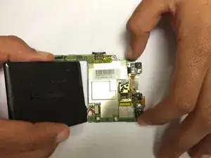 Теперь вы можете отсоединить гибкий кабель, удерживающий плату PCB. Осторожно откройте фиксаторы с помощью пинцета или пластикового инструмента и сдвиньте гибкий кабель пинцетом.