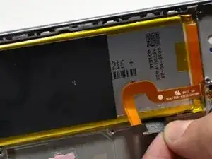 Найдите клеевую ленту под батареей. Осторожно потяните за ленту, чтобы ослабить ее достаточно для удаления батареи из устройства.