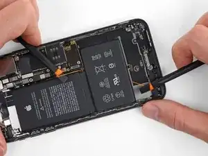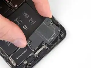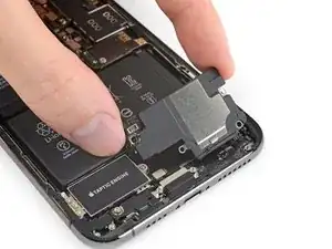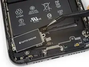 Переустановите Taptic Engine и динамик перед установкой нового аккумулятора. Это поможет удерживать аккумулятор в правильном положении во время установки.