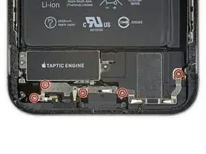Удалите два винта Phillips длиной 1,9 мм, фиксирующие тактильный двигатель.