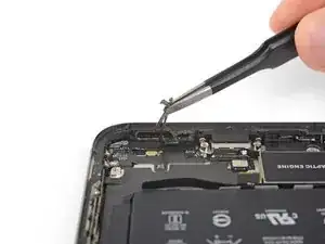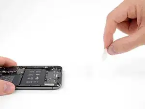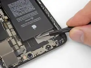 Если клеевые ленты аккумулятора порвутся в процессе удаления, используйте пальцы или тупые пинцеты, чтобы достать оставшийся кусок клея, и продолжайте тянуть.