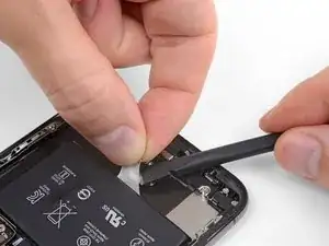 Используйте лопаточку или чистый ноготь, чтобы приподнять разъем батареи из его гнезда на плате логики.