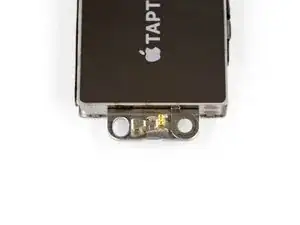 Контактная скоба на левой стороне тактильного двигателя может отломиться. Убедитесь, что она установлена правильно, как показано, перед повторной установкой тактильного двигателя в iPhone.