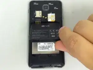 С помощью пальца и с нижнего края поднимите батарею из телефона и отложите в сторону.