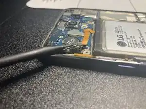 Предостережение: Перед началом разрядите батарею телефона ниже 25%. Заряженная литий-ионная батарея может загореться и/или взорваться при случайном проколе.