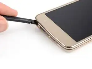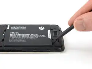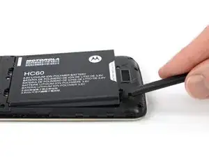 Используйте лопатку или ноготь, чтобы приподнять батарею, начиная с выемки в левом нижнем углу.