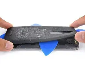 Проведите открывающей лопаткой вдоль верхнего края телефона, чтобы разорвать клей.