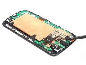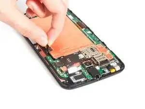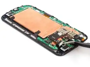 Отсоедините разъем сборки считывателя SIM и SD-карт, а также разъем батареи. Освободите вибромотор.