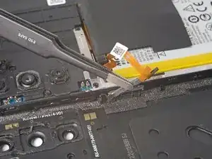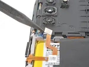 Используйте заострённый конец лопатки, чтобы поддеть и отсоединить контактная площадку кнопки питания.