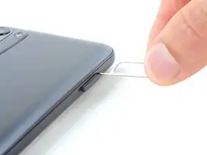 Вставьте инструмент для извлечения SIM-карты или распрямлённую скрепку в отверстие рядом с лотком для SIM-карты.