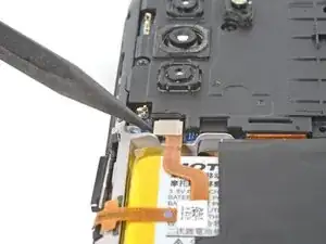 Используйте пинцет или пальцы, чтобы отцепить резиновую тягу кнопки питания от её крепления и снять её.