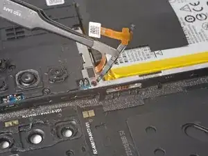 Используйте отвертку PH00, чтобы выкрутить два винта длиной 3.9 мм, фиксирующие скобу кабеля кнопки питания.