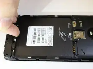 Аккуратно снимите заднюю крышку, используя выемку, расположенную внизу телефона, рядом с разъемом для зарядки.