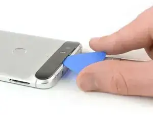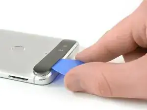 Можно снять заднюю крышку с помощью iOpener, как показано в этом руководстве, но это длительная и сложная процедура. Мы рекомендуем тепловую пушку или что-то подобное. Клей в Nexus 6P чрезвычайно липкий, и особенно стекло и пластиковая крышка на тыльной стороне чаще всего ломаются или деформируются во время этого ремонта.