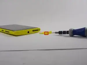 Используйте самую маленькую отвертку Torx или другой небольшой толкающий инструмент и нажмите в отверстие на лотке SIM-карты. Пластиковая защитная деталь SIM-карты должна легко выскочить.