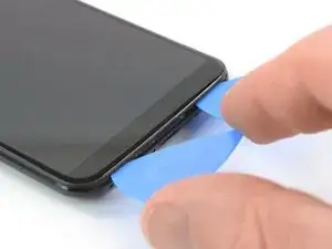 Проведите медиатором вокруг нижнего левого угла, затем вверх вдоль левого края телефона, чтобы открыть пластиковые зажимы, удерживающие заднюю крышку.