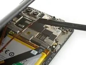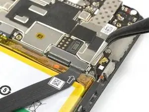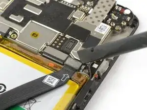 Используйте лопаточку, чтобы поддеть и отсоединить шлейф батареи.