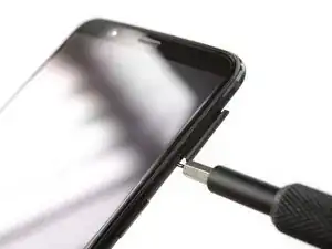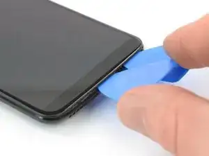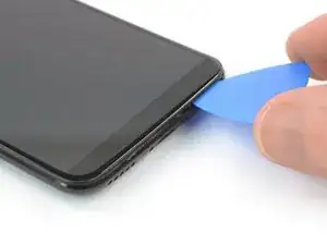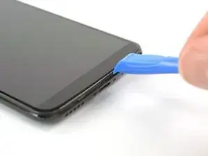 Вставьте инструмент для открывания между дисплеем и задней крышкой в нижней части телефона.
