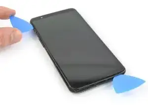 Используйте инструмент для открывания, чтобы создать зазор между задней крышкой и дисплеем.