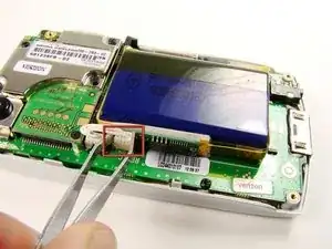 С помощью металлических пинцетов отсоедините маленькую белую клемму.