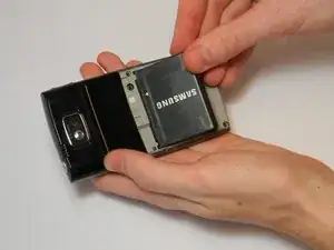 Нажмите вниз на верхнюю часть панели батареи, при этом тяните вниз, чтобы снять ее с телефона.