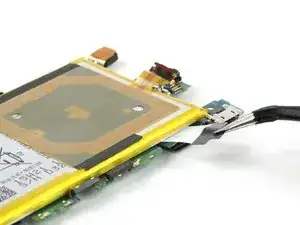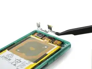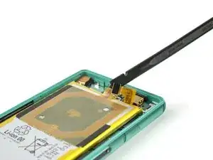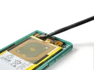 Отсоедините гибкий кабель антенны NFC пинцетом.