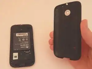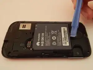 Вставьте пластиковый открывающий инструмент в зазор между камерой и батареей.