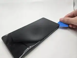 Вставьте и проведите медиатором iFixit вдоль разогретых краёв, чтобы разрезать клей, крепящий заднюю крышку.