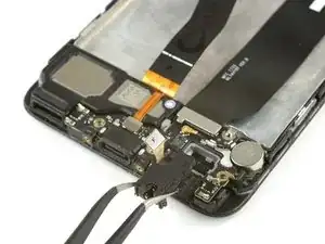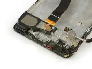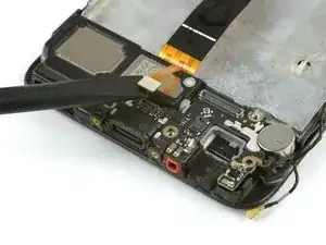 Отключите гибкий кабель разъёма для наушников, используя плоский конец лопатки.