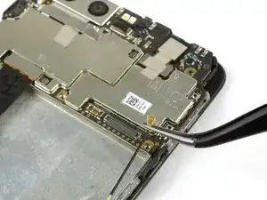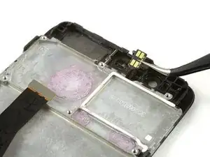 Снимите металлическую пластину, закрывающую плату зарядки и основной гибкий кабель, с помощью пинцета.