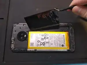 Осторожно отогните чёрную ленту от батареи, чтобы открыть последний винт.