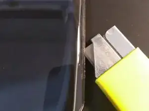 Осторожно вставьте лезвие бритвы между стеклянной задней панелью и рамой телефона.