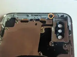 Снимите винт Phillips 2,3 мм, фиксирующий антенну к корпусу задней камеры.