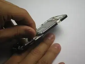 На следующем шаге вы будете снимать переднюю панель экрана. Будьте аккуратны, так как она приклеена. Если применить чрезмерное усилие, панель может треснуть.