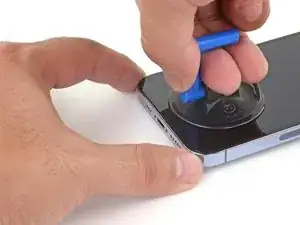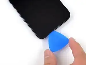 Водонепроницающий клей, удерживающий экран, очень прочен; создание начального зазора требует значительной силы. Если вы испытываете трудности, примените больше тепла и аккуратно покачайте экран вверх и вниз, чтобы ослабить клей, пока не появится достаточный зазор для инструмента.