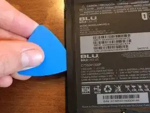 Проведите медиатором по периметру телефона до тех пор, пока задняя крышка не ослабнет и не будет готова к снятию.