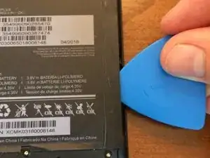 Используйте пластиковый медиатор, чтобы отлепить наклейку от планок верхней и нижней пластмассовых пластин по обеим сторонам батареи. Это откроет доступ к винтам обеих пластин.